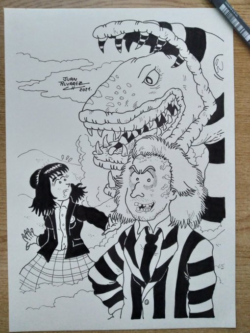 Inktober Día 7: Bitelchus y Lyla. Todos los dibujos de mi Inktober son tamaño A4 y están a la venta, solo tenéis que enviarme un email o un mensaje privado si os gusta alguno. #inktober2021 #inktober #dibujo #ilustración #art #artwork #bitelchus #beetlejuice @NoEsUnHobby