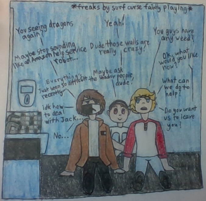 they are depressed and high in the bathroom at a party while freaks by surf curse faintly plays from outside #ranboofanart #jackmanifoldfanart #tommyinnitfanart #alliumduofanart #bitterduofanart