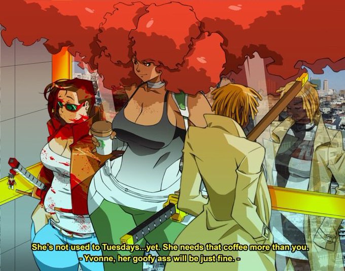 When the yakuza family installed elevators made with consideration for your hairstyle, you know they fuck with you heavy. #parttimeshuffle #afro #kunoichi #blackanimecharacter #yakuza #assassin #thicc #anime #animation #drawingwhileblack #aishahgarman