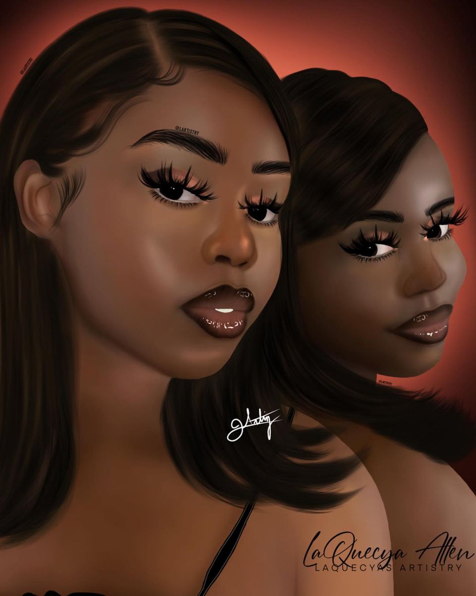 @laquecyasartistry This gives me Gemini vibes 🖤 • Muse: @theesudani 🥰 • swipe for some of the process • Likes, shares & comments are appreciated. 🖤 #laquecyasartistry #procreate #blackart #digitalportrait #digitalart #blackgirlsillustrate #melaninart #blackartwork