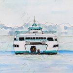 Happy #AnimalAlphabets Monday! Here is my B for Bear in a Boat 🐻🐻⛴️Had to be a ferry! I Love seeing and hearing the ferry everyday. Hope you have a great week! @AnimalAlphabets #animalsinsituations #illustrations #weeklyartchallenge #atozofanimals #ferrypainting #blackbear