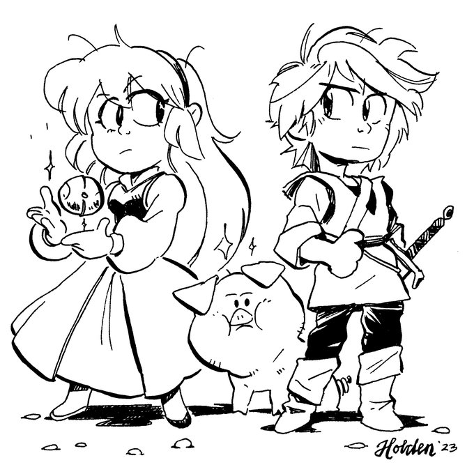 An oracular pig and her two humans for a recent commission! #ChroniclesofPrydain #BlackCauldron