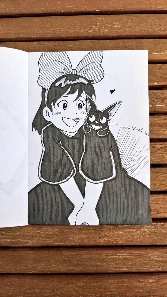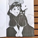 Inktoberday 7: Kiki's Delivery Service #INK #inktober #inktober2021 #kiki #kikisdeliveryservice #ghibliredraw #ghibli #fanart #witch #cat #blackcat #fly #blackdress #happy #traditionalart #art #artwork #illustration #drawing #fineliner
