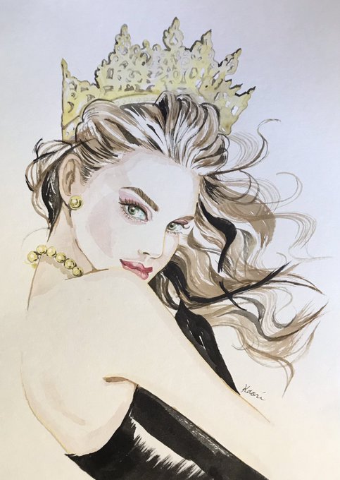 やっぱり墨の黒は綺麗。 ゴールドアクセとブラックドレス。梅雨空の自然光の下で。 #中里かおり #イラストレーション #水彩イラストレーター #透明水彩 #水彩 #墨 #makeup #art #artwork #girl #woman #illustrator #blackdress #illustration #kaorinakazato #fashionillustration #watercolor