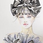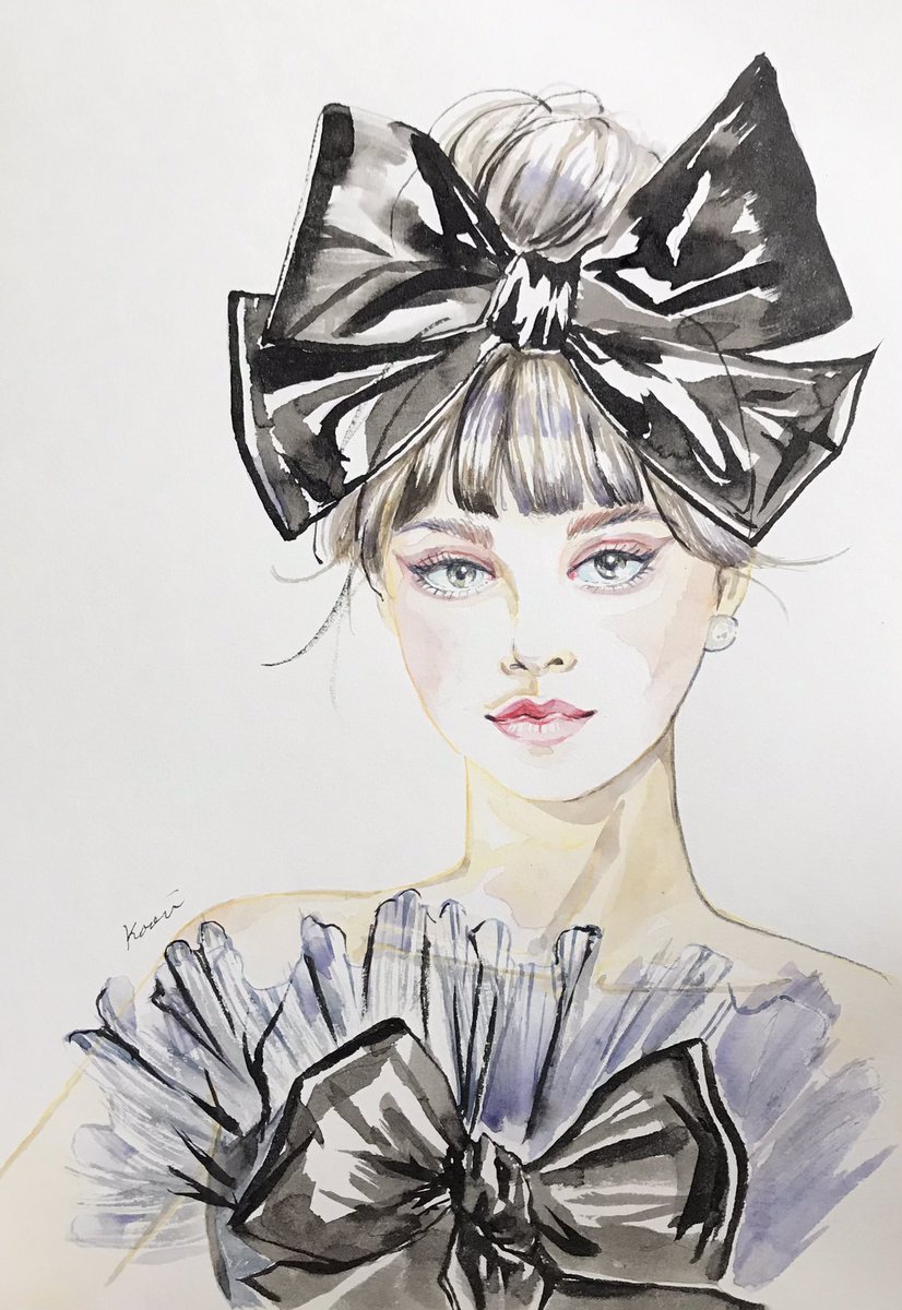 入梅の候お見舞い申し上げます。 ブラックリボンのドレス。 絵の具が乾かない空☔️ #中里かおり #イラストレーション #リボン #パールイヤリング #水彩イラスト #透明水彩 #墨 #makeup #art #artwork #girl #woman #blackdress #illustration #kaorinakazato #fashionillustration #watercolor