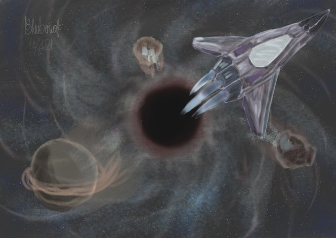 Danger a black hole🕳 Day 31: Risk #inktober2021 En el espacio hay muchos peligros, pero el mayor de ellos son los agujeros negros. #inktoberday31 #risk #spaceship #blackhole #space #dangerous #espacio