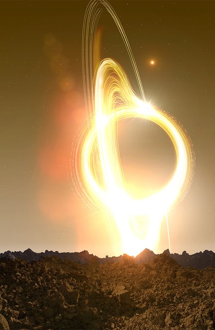 A black hole dominates the sky of an alien world. #Illustration by Ray Cassel. #sciart #BlackHole