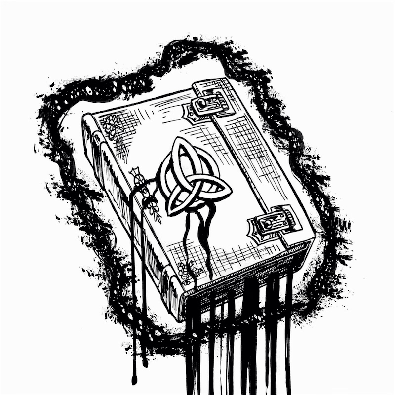 #Inktober 2021 Day 23 #Leak / #BlackMagic I don’t know what Blair the #Witch and Sam Valentine did when they opened the #book. But, whatever it was, they shouldn’t had done that. Now it’s leaking black magic! #spooktober #drawlloween