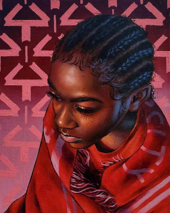 ENGROSSED art by @topefatunmbi ・・・ Title : 'Engrossed' Size : 153x 183cm Medium :Oil and Acrylic on canvas Year :2022 —— #creative #DopeArtist #illustration #arts_help #blackmagic #abstractart #YoungBlackArtists #BlackArtist #arteza #beautifulbizarre #woman #queen