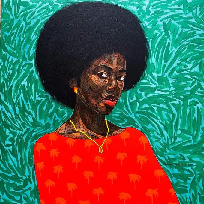 UNBOTHERED art by @gafar_oluwabori_art_creator ・・・ "Unbothered" Acrylic on canvas 4/4ft 2022 —— #InstaArtist #instagood #InstaArt #arts #artist #artistsoninstagram #artlovers #blackart #creative #DopeArtist #illustration #arts_help #blackmagic #abstractart