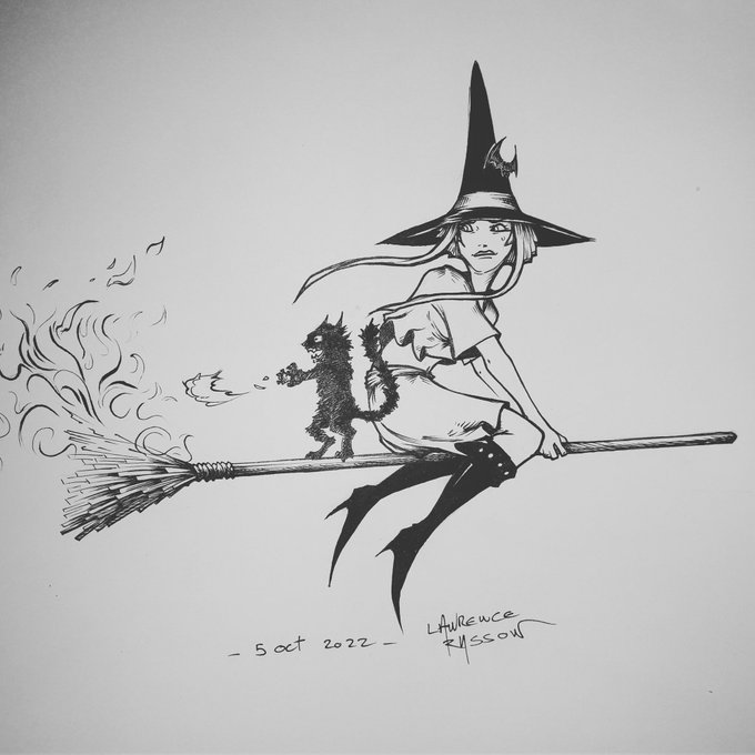 #inktober jour 7 / Day 7 : Trip / Voyage par Lawrence Rasson #witchtober #art #witch #cat #blackandwhite #inktoberchallenge #occultart #bat #flame #blackmagic #trip #HarryPotter #finalfantasy