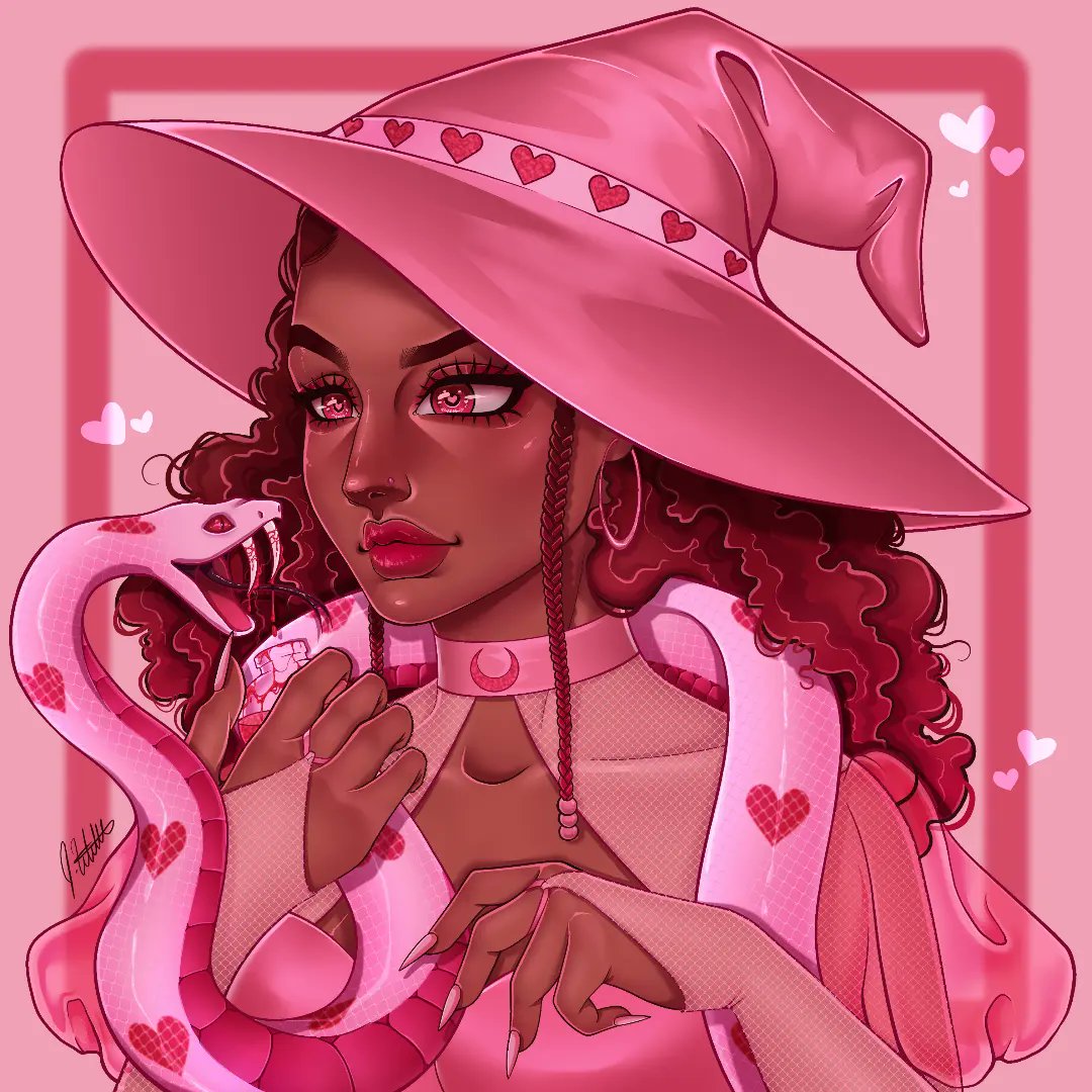 Love Potion 💖🔮 Happy valentine's day y'all 💕 #ValentinesDay2022 #witch #aesthetic #digitalart #illustration #art #blackoc #BHM #MediBang