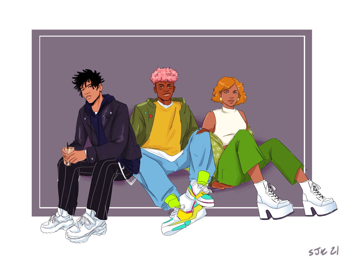 Here are the 3 black #HypnosisMic designs I've completed so far 🤎🎤 Which #HypMic characters would you want to see me draw next? 👀 #blacktober #Blacktober2021