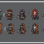 All the pixel mini for @bladesinthedark I made this last week. 🗡️=) #pixelart #ttrpg #bladesinthedark Also very excited about the Con in the Dark con this weekend. =D