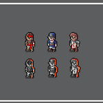 Blades in the Dark pixel art factions, Red Sashes, City Watch (Those damn BLuecoats) and Billhooks. =) I will not tag the official Blades page to not annoy them every day. =D #pixelart #ttrpg #bladesinthedark