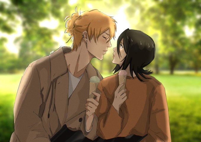 Ice cream date 😋 #Anitwt #anime #BLEACH_anime #IchigoKurosaki #rukiakuchiki #bleachなりきりさんと繋がりたい #fanart #love