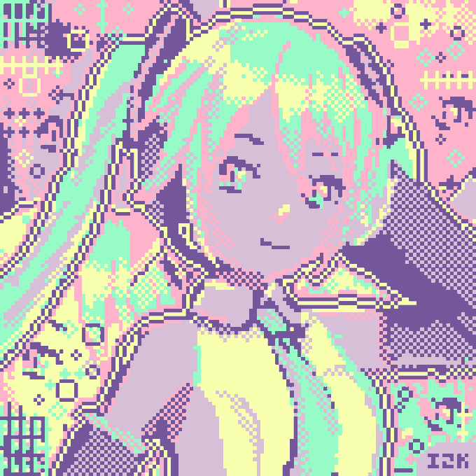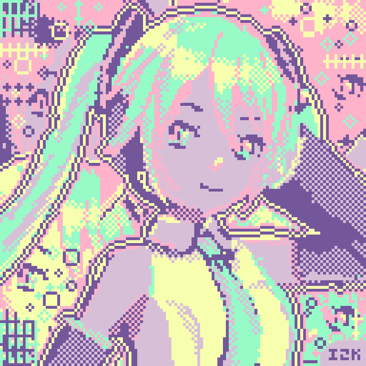 Fanart of #Hatsune_Miku for the Lospec Dailies "famous" prompt using the #blessing restricted palette. #pixelart / #ドット絵 / #pixelartist / #픽셀아트 / #asesprite