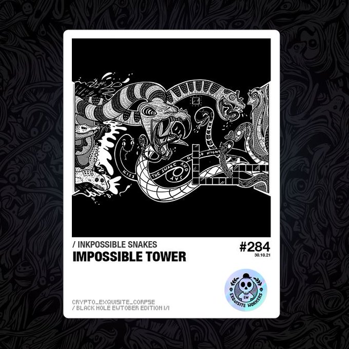#284 Inkpossible Snake - IMPOSSIBLE TOWER #NFTTOSTAY #exquisitecorpse #nftfam #nftcollectors #NFTdrop #nftarts #blockchainart #inktober2021 #NFTcommunity #NFTcollectables #nonfungibletoken #NFTpromotion #OpenSeaNFT @opensea #Inktober opensea.io/assets/0x495f9…