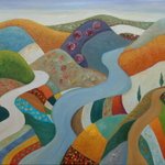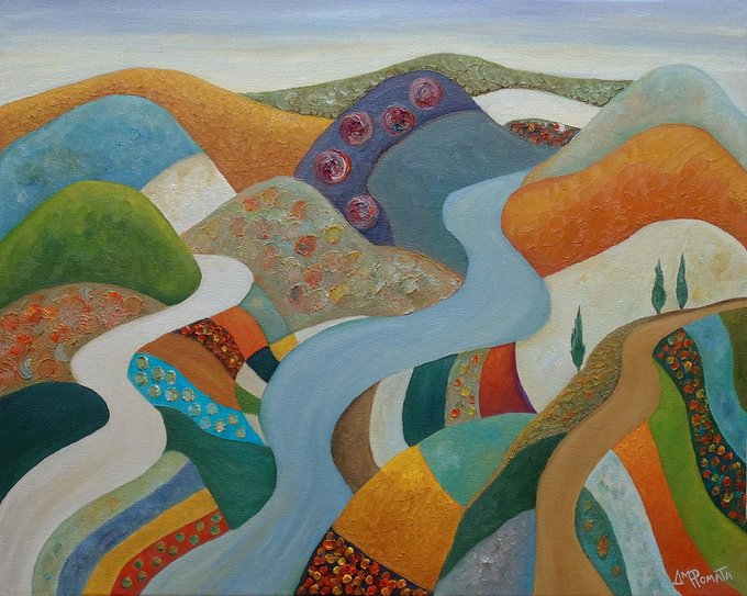 This is my new painting "Live And Learn". You can check it out here: fineartamerica.com/featured/live-… #arte #artlovers #kunst #artprints #oilpainting #contemporaryart #ArtistOnTwitter #fields #spring #blossoms #landscape #hill #mountain #flowers #stripes