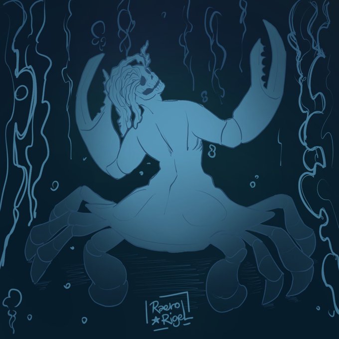 #Mermay Day 13 - Redraw I chose an old piece of my first Mermay, where I mixed two concepts into one drawing, or at least tried to. #mermay2023 #bluecrab #zombie #relaxingmermay