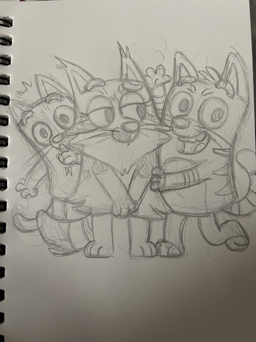 Another bedtime drawing: my cats in #bluey style! Bonus video of Sunny performing his quality control duties! #blueyfanart #blueyart @OfficialBlueyTV twitter.com/i/web/status/1…