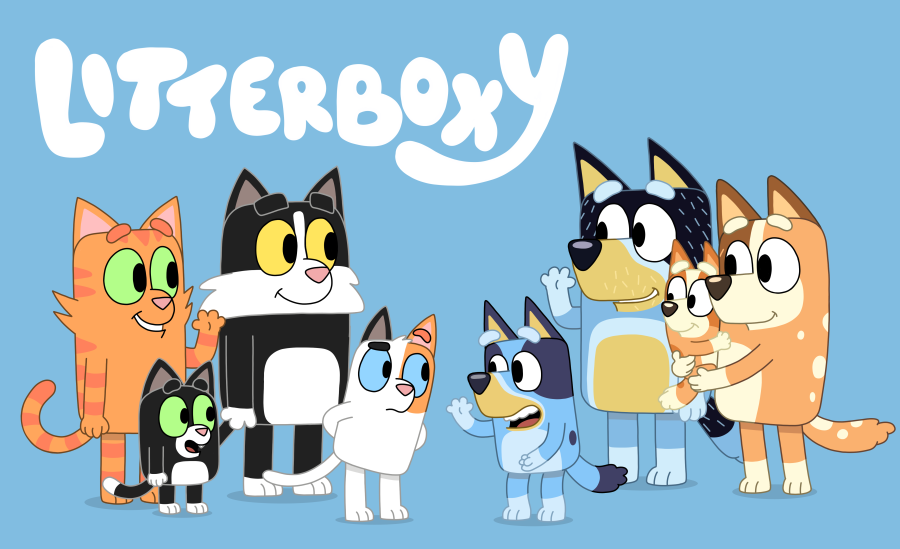 The kids have FINALLY embraced watching @OfficialBlueyTV (yay!) and the theme song is now on a constant loop in my head (boo!) It got me wondering what the Litterbox Family would look like in their world... #Bluey #blueyfanart #blueyart
