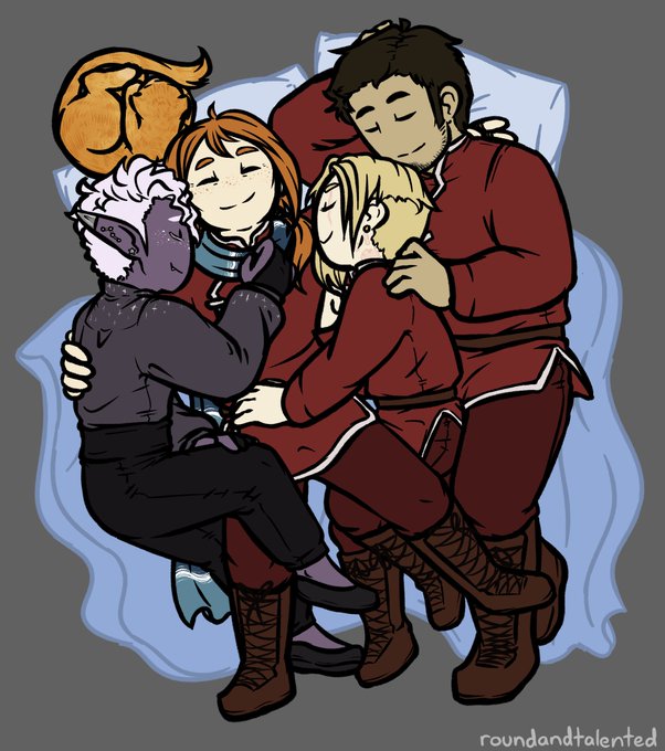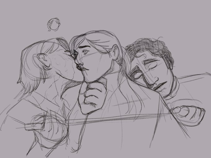 Wir drei, immer. If you need me I'll be crying in my bed until I find out that Eadwulf Grieve is okay. 🙏 #Criticalrole #Criticalrolefanart #Blumendrei #Blumentrio #CalebWidogast #AstridBeck #EadwulfGrieve @VoiceOfOBrien