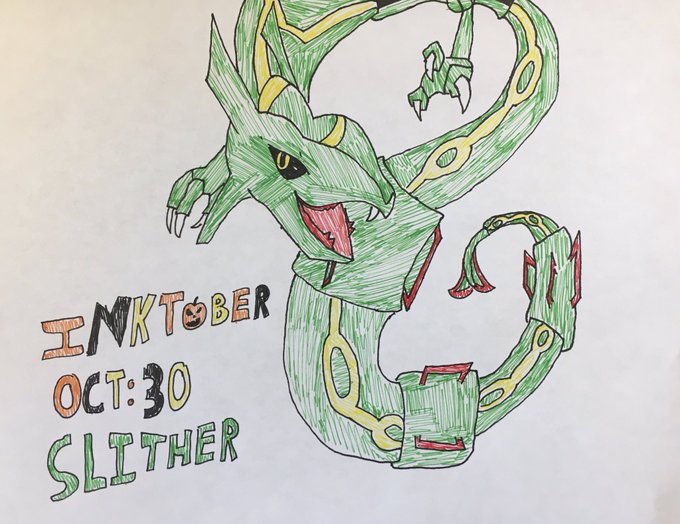 My 7th grader is taking over my Twitter for #inktober2021 - here we go! #slither #medfieldinktober #medfieldps #bmsed #rayquaza