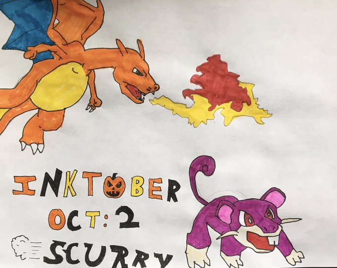 My 8th grader is taking over my Twitter for #inktober2022 Day Two #scurry #pokemon #medfieldinktober #medfieldps #bmsed