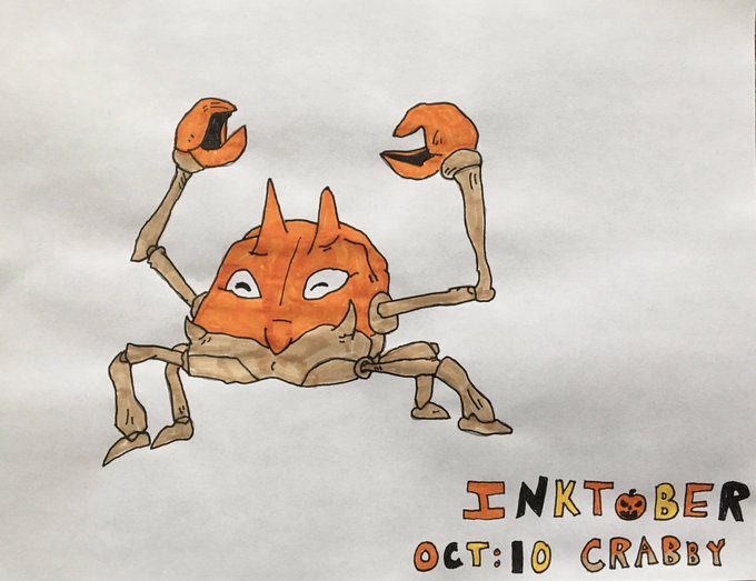 My 8th grader is taking over my Twitter for #inktober2022 Day Ten #crabby #pokemon #krabby #medfieldinktober #medfieldps #bmsed