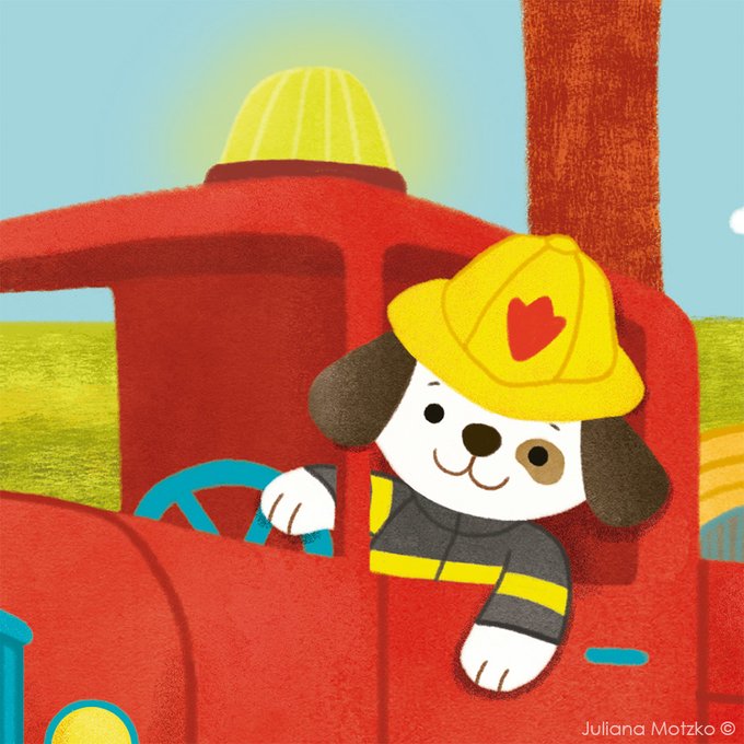 Did someone call the Fire Brigade? A sweet close up of my lovely book "Kni-Kna-Knatterbuch - Fahrzeuge" - published by Ars Edition. @arsEdition ❤️ #babybook #cute #dog #vehicles #characterdesign #kidlitart #kidlitartist #boardbook #kinderbuch #illustration #JulianaMotzko