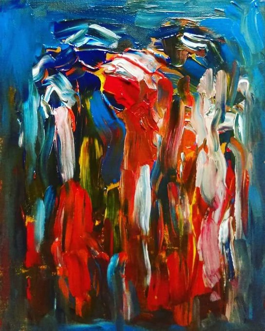 @madgescottstudio "Shoulders To Lean On." 4.5"×6.5" on paper. #art #artist #artistsoninstagram #awardswinningartist #appreSHEation #awakening #artswestchester #bobmarleyart #blackwomanartist #blueartwork #collage #collageartist #collageart