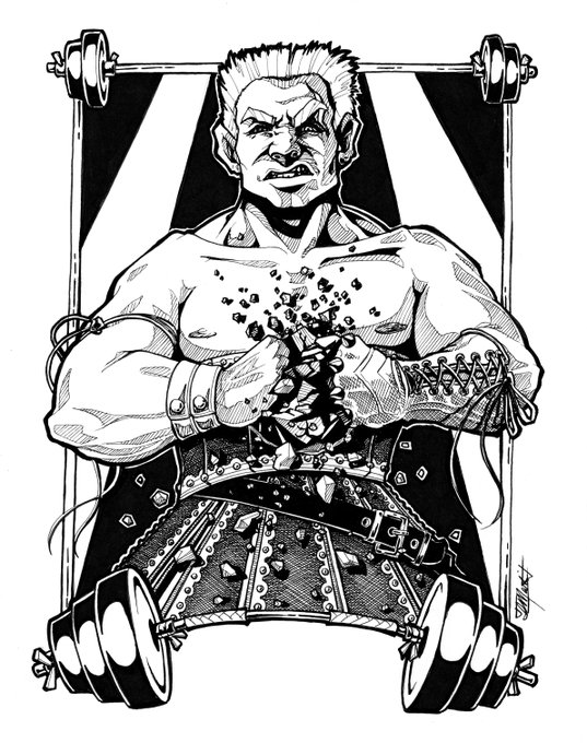 Day 9 - Pressure "The Crusher" - 8x10, ink on bristol. I feel like I've really improved on individualizing faces and expressions. :) #inktober #inktoberday9 #inktober2021 #characterart #fantasyart #fantasyinks #inktoberpressure #pressure #crusher #strongman #bodybuilder #brute