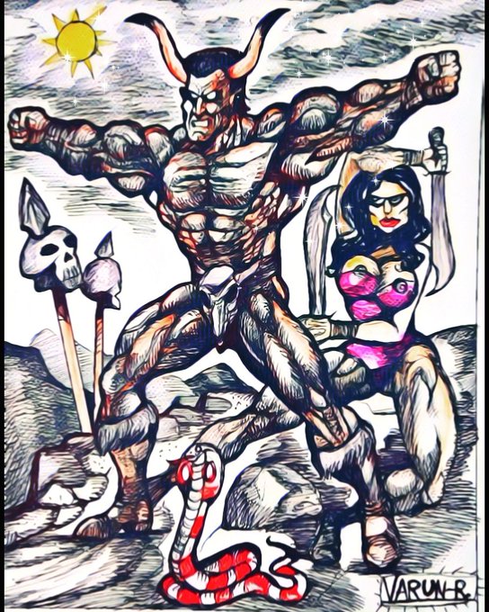The Ultimate Warrior ⚔️🏹🐂🐍 #ArtistOnTwitter #art #artist #drawluca #draw #inktober #SURREALISM #fantasyart #bodybuilding #bodybuilder
