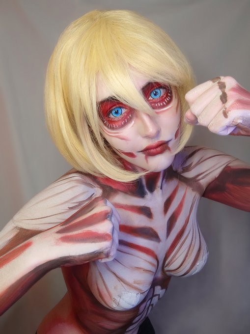 My Female Titan cosplay Makeup by me (@Nyukix_ ) bodypaint art This took me 2 and a half hours to do💪 #makeup #AttackOnTitan #cosplay #bodypainting #ShingekiNoKyojin #ShingekiNoKyojincosplay