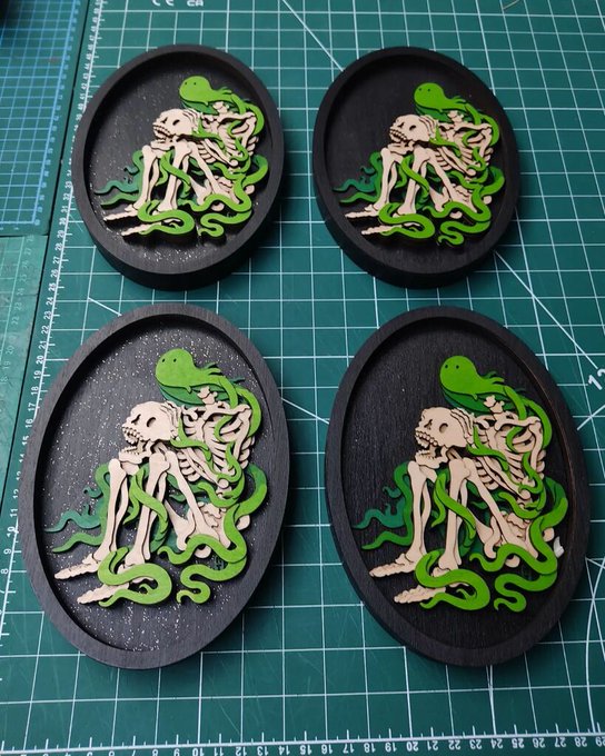 Four Dreams of Distant Galaxies, each sparkling and unique. - - #art #design #illustration #craft #woodworking #skeleton #bones #skull #skelly #space #dreams #galaxy instagr.am/p/ClEqGJ7q1DT/