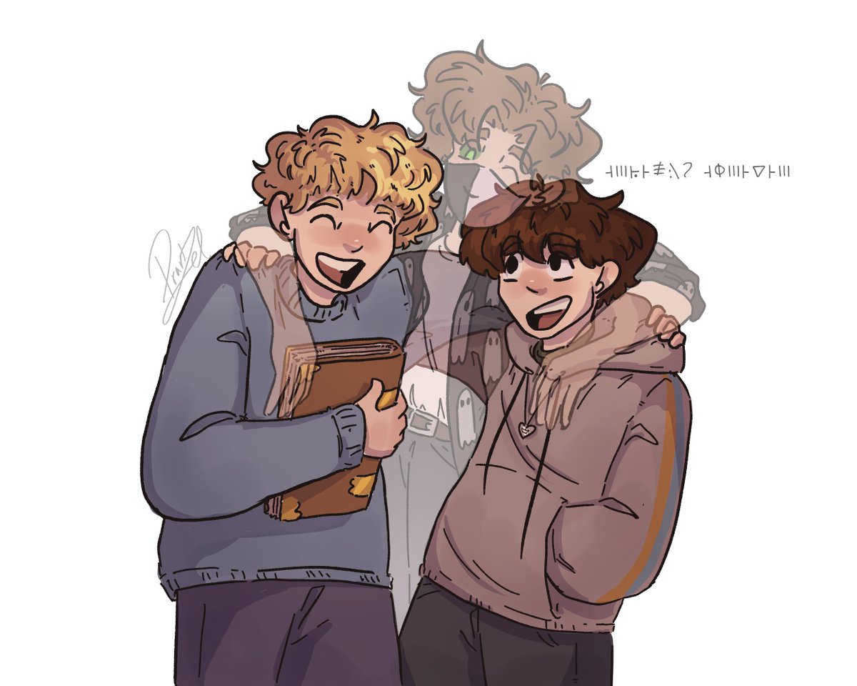 two idiots and their ghostly buddy! #prartzel16kdtiys #benchtriofanart #tommyinnitfanart #tubbofanart #ranboofanart #booandthebrits