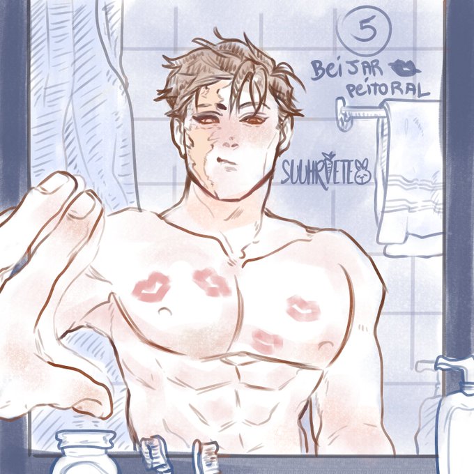 Desculpa gnt, mas só deu pra isso hj :( Dia 5 - Beijar Peitoral #boobtober #inktober2022 #Inktober