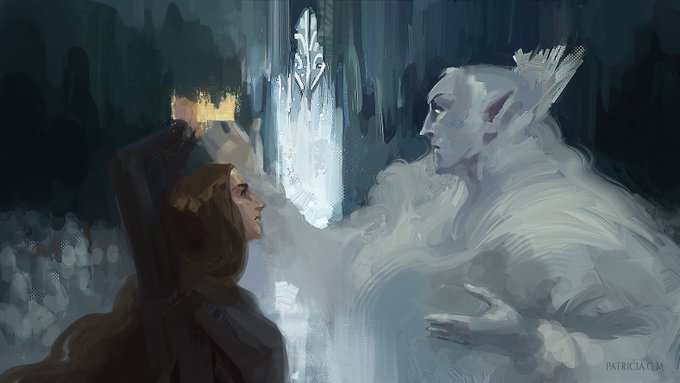 . 𝕚𝕟𝕥𝕠 𝕥𝕙𝕖 𝕝𝕒𝕓𝕪𝕣𝕚𝕟𝕥𝕙 a concept painting I created for author @AdriAnneMS ...characters from a new project of theirs #myart #digitalpainting #winterofherdiscontent #characterdesign #bookart