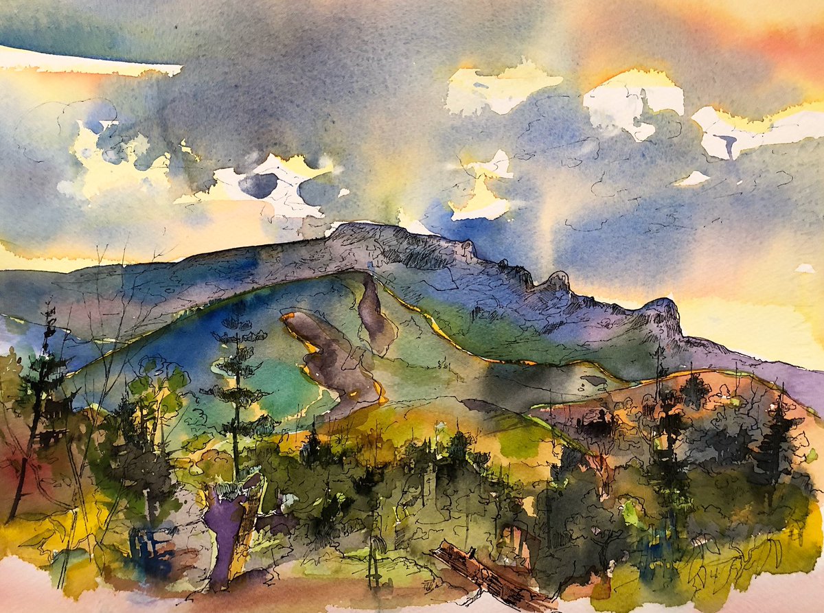 pen-ink-watercolor wash of Grandfather Mountain Profile on Kilamanjaro paper from @cheapjoesartstuff w/ #americanjourneywatercolor going to @brframeworks #ncartists #weswaugh #boonenc #grandfathermountain #watercolor #penandwatercoloursketch #mixedmedia
