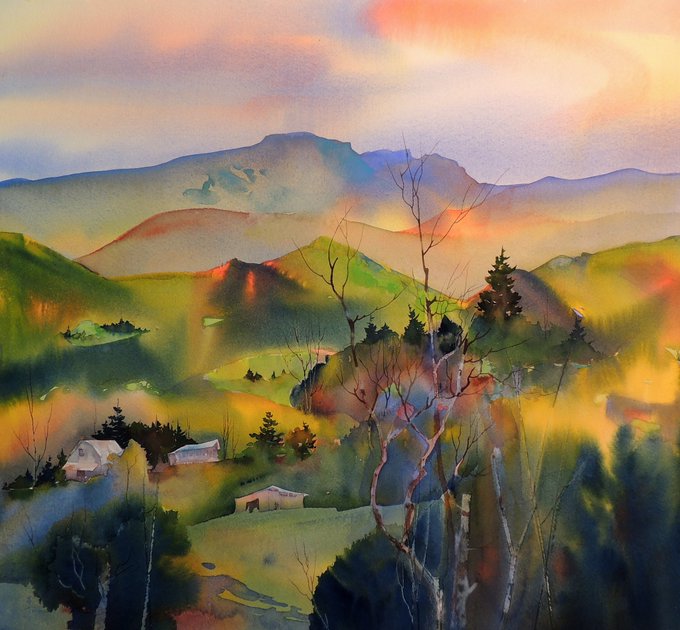 “Parkway Evening” #watercolor #archespaper #fabriano #landscapepainting #watercolorpainting #watercolour #weswaugh #boonenc #blowingrocknc @CheapJoesArt #americanjourneypaint