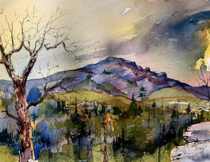 Linville Gorge from Sitting Bear #watercolor #landscapepainting #weswaugh #boonenc #appstate #linvillegorge #wilderness #pintura #watercolour #Fall2021 #watercolorpainting @CheapJoesArt #americanjourneypaint
