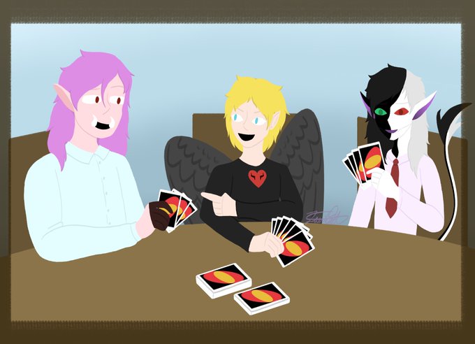 Family uno game! Featuring Techno blatantly cheating, Philza calling him out, and Ranboo trying to remember how to play! [#technofanart @Technothepig #philzafanart @Ph1LzA #ranboofanart @Ranboosaysstuff #Borealtwt]