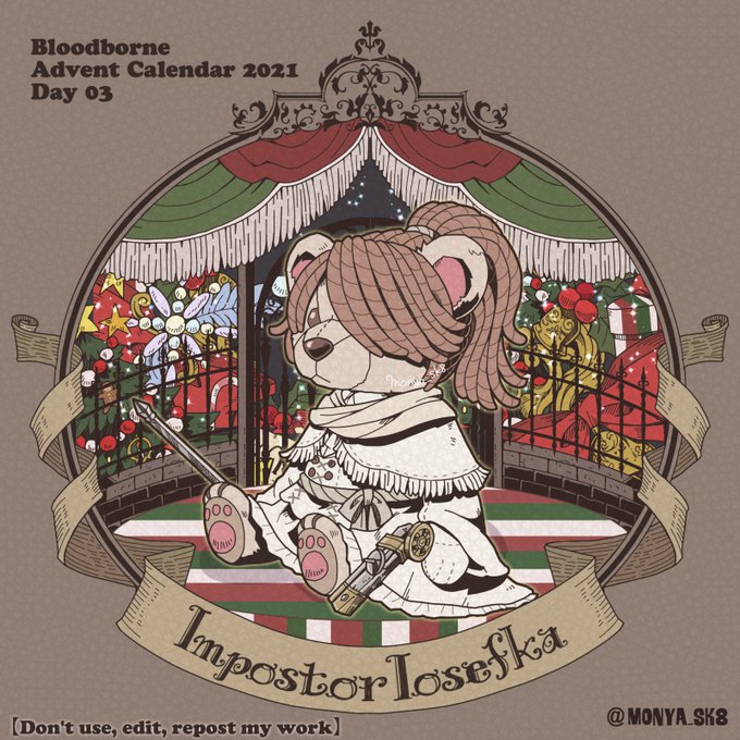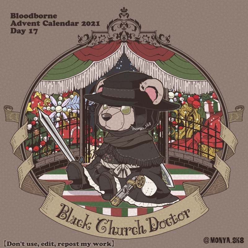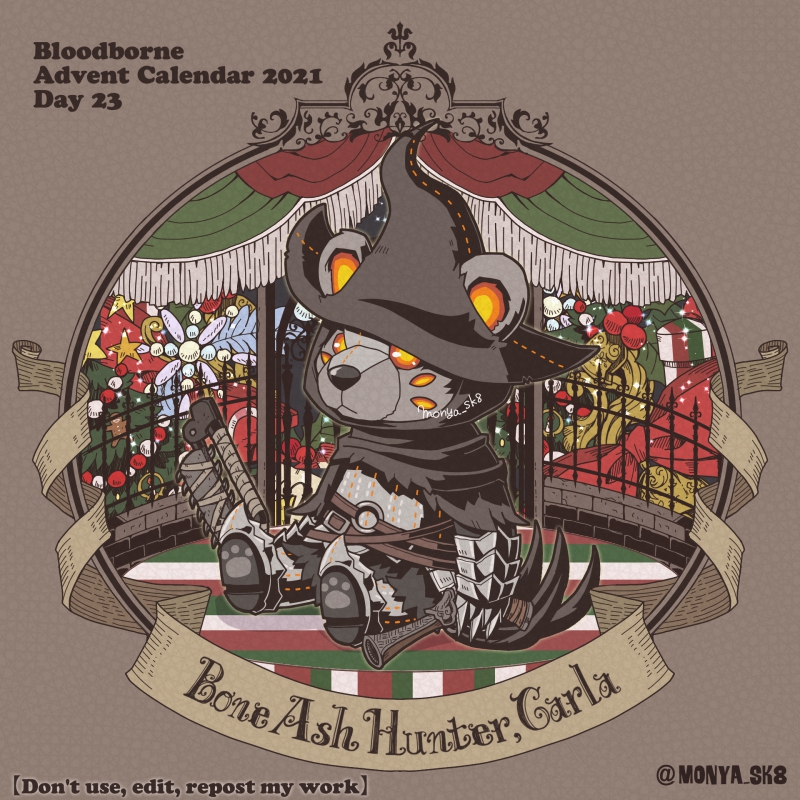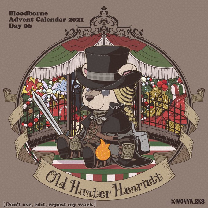 Day06:古狩人ヘンリエット〜Old Hunter Henriett〜 ベア〜リエット なにげに協力で呼び出せるNPC狩人では紅一点なんですね〜。 #borneadvent21 #もにゃ絵