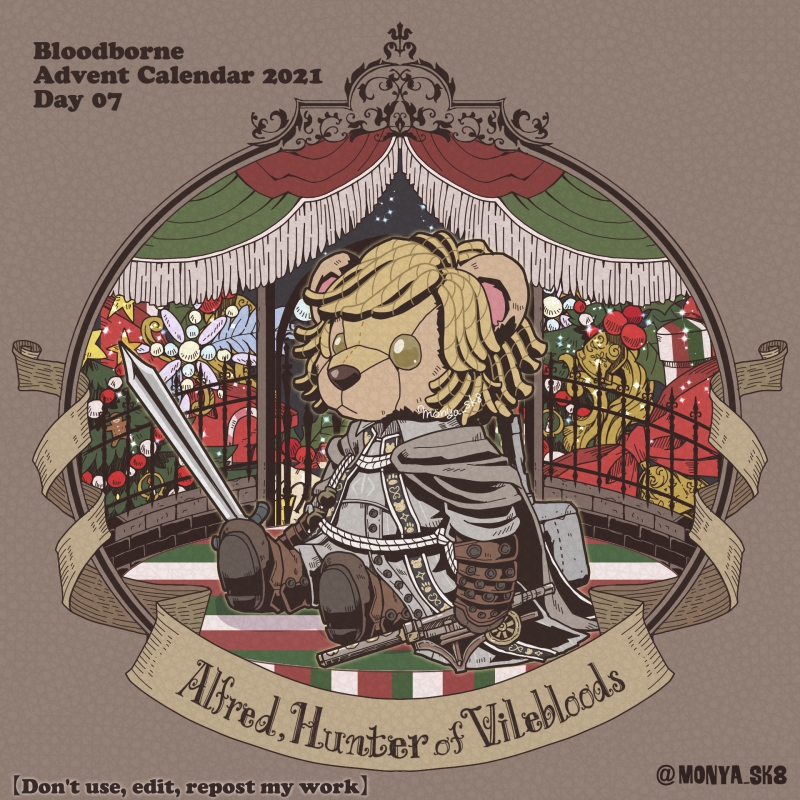 Day07:血族狩りアルフレート〜Alfred, Hunter of Vilebloods〜 べアルフレート。 金のクマコーンバージョンもつけておきます。 #borneadvent21 #もにゃ絵