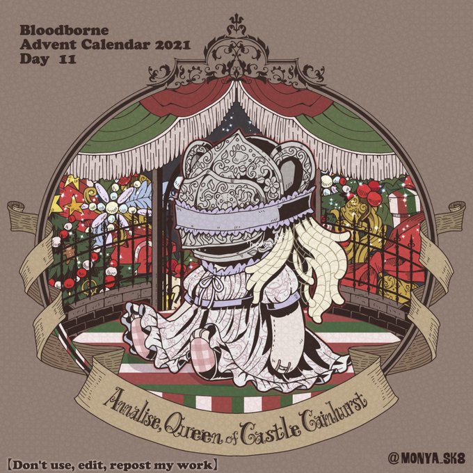 Day10:血の女王アンナリーゼ〜Annalise, Queen of Castle Cainhurst〜 べアンナリーゼ様。 多分ご褒美は血じゃなくて綿 #borneadvent21 #もにゃ絵