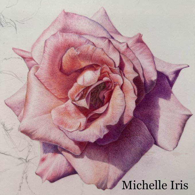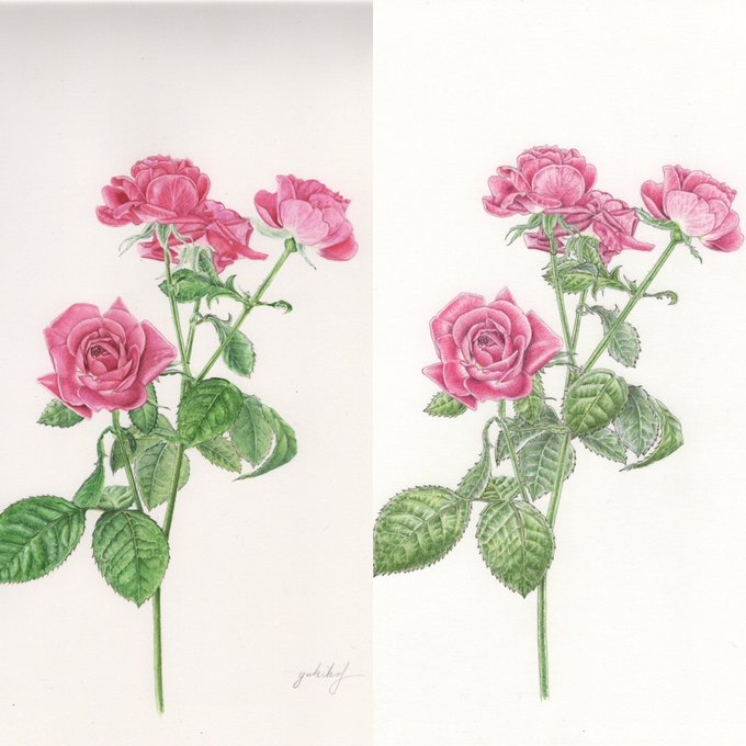 やっとここまで漕ぎ着けました。 また夕方、続きを…。 #薔薇 #色鉛筆画 #イラスト #みんなで楽しむTwitter展覧会 #Rose #colorpencil #illustraion #botanicalart