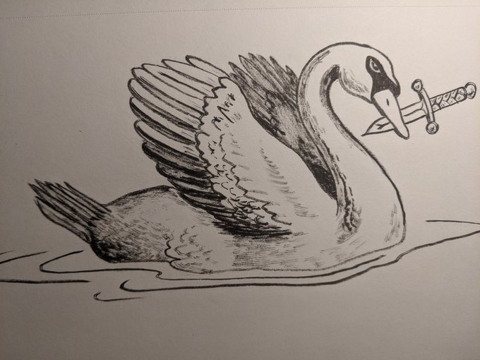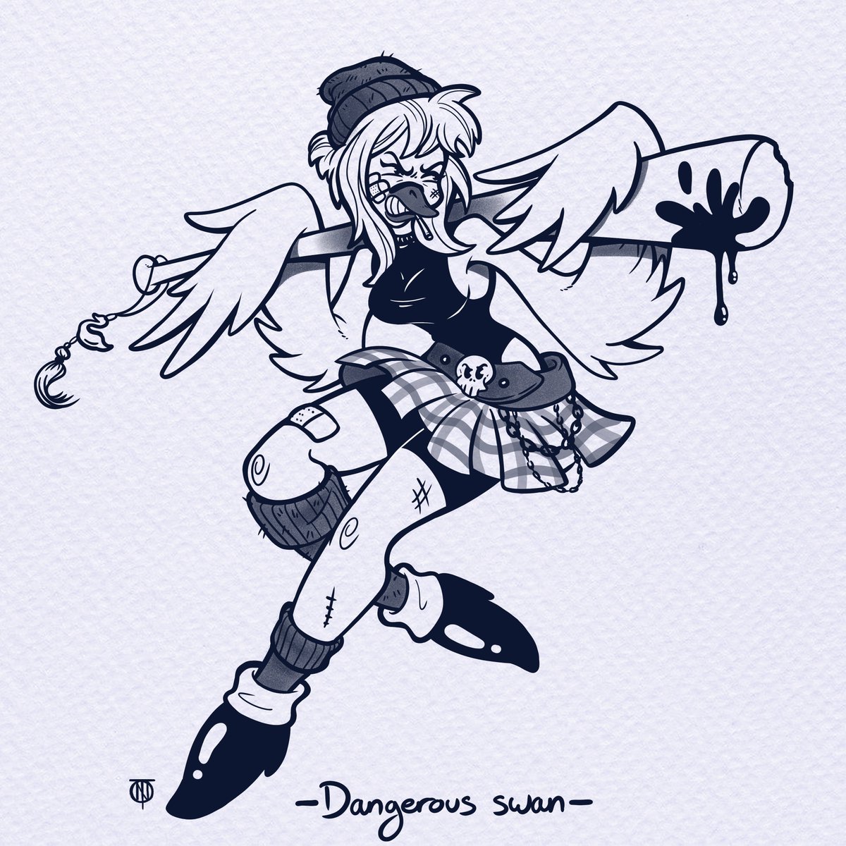 #inktober 17, dangerous swans. Watch out, this one has a knife! Using the AI bot animals prompt this year. #drawtober #drawtober2021 #botober #botober2021 #inktober2021