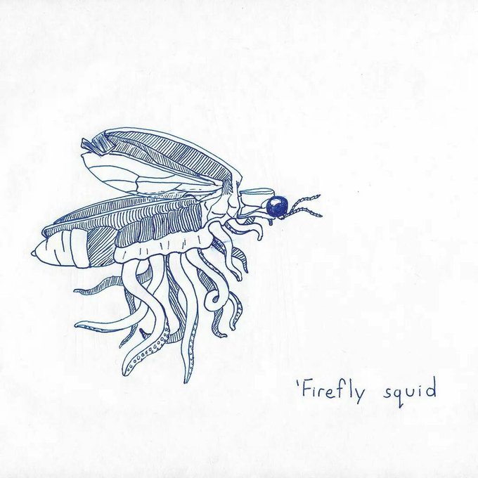 #inktober 28, firefly squid. Using the AI bot animals prompt this year. #drawtober #drawtober2021 #botober #botober2021 #inktober2021 #squid