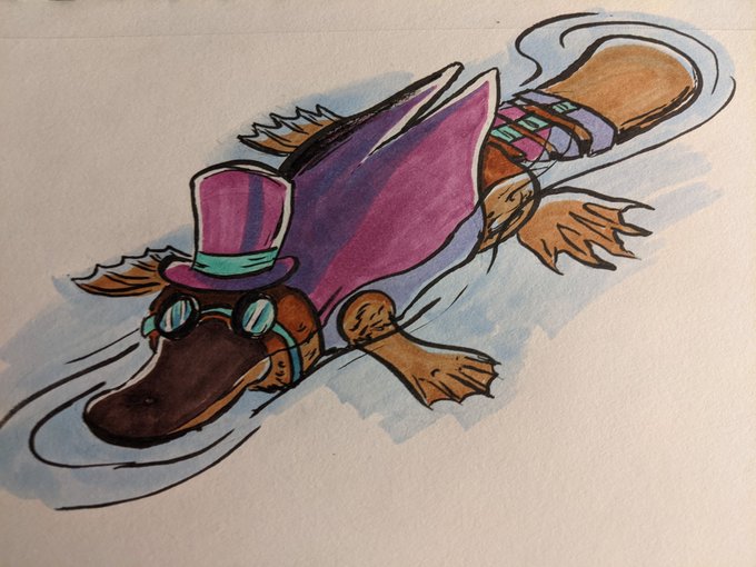 #inktober 23, steampunk platypus. Using the AI bot animals prompt this year. #drawtober #drawtober2021 #botober #botober2021 #inktober2021